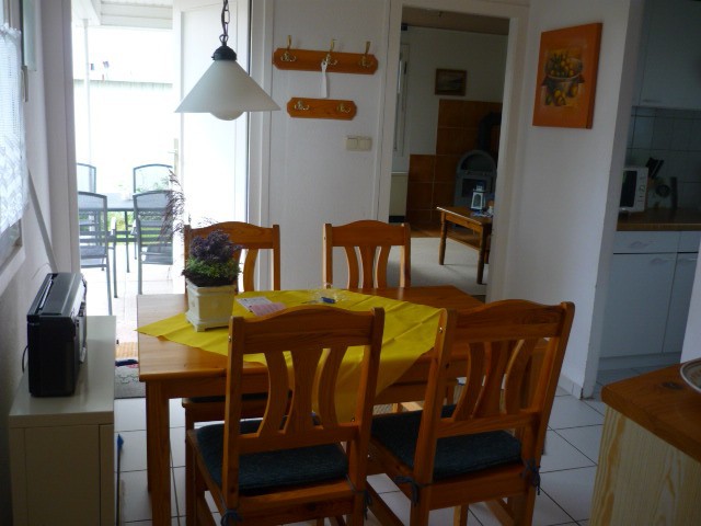 Im Vorraum steht ein großer Tisch, der zu gemütlichen Spieleabenden und gemeinsamem Essen einlädt.